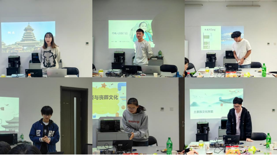 各民族员工代表先后就本民族特色文化进行分享。侗族代表王孝媛分享了民族服饰侗布、语言文学、建筑及饮食,展现了人与自然和谐共处的智慧,并以侗语俗语“山高比不过人的志气高”与大家共勉。穿青人族代表周健揭秘其称谓、分布、信仰及婚丧习俗,强调穿青人在现代化中坚持文化传承与创新的平衡。壮族同学韦凯良、黄梓瑜、卢茜分别展示了壮语、服饰、节日及非物质文化遗产,如三月三歌节与织棉绣球,彰显壮族文化的多彩与融合。藏族代表洛桑扎杰从藏民族起源讲起,介绍了藏文藏语的独特魅力及其在现代化中的保护与传承,同时分享了宗教信仰与生活方式的现代融合。土家族的姚源瀚、吴小乐、冉一洲则展示了土家族蛊术、婚丧习俗及饮食文化。大家就各民族独特的文化习俗展开热烈讨论。