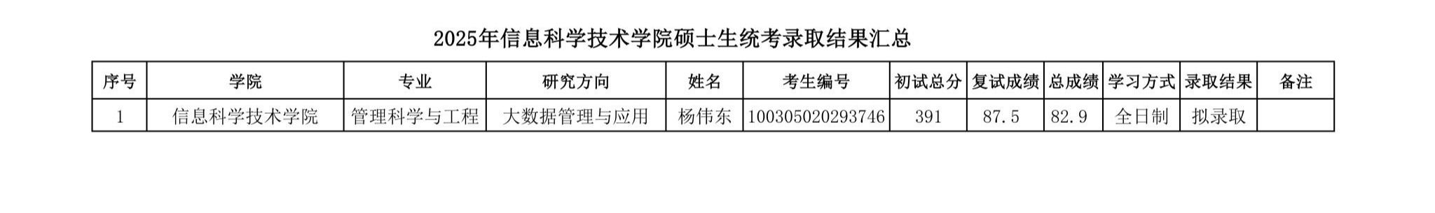 2025年XCSport硕士生统考录取结果